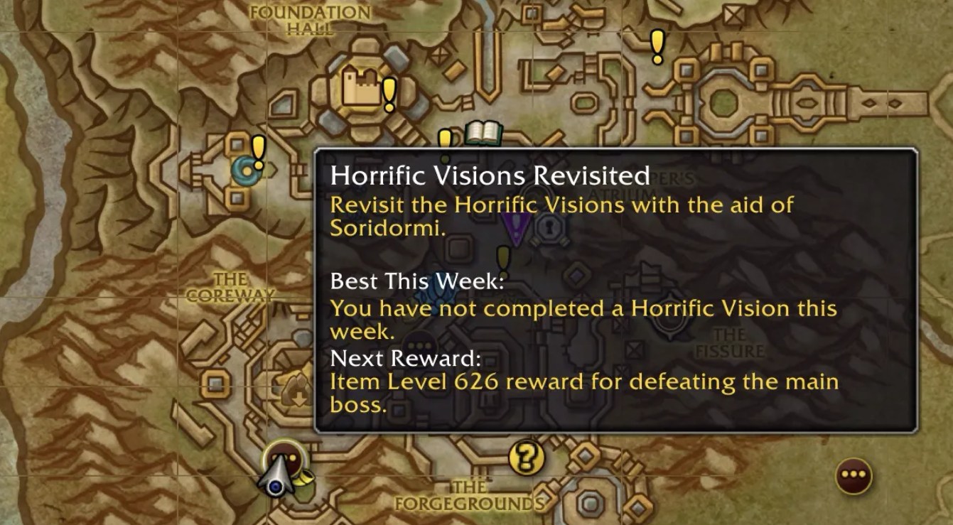 After completing the introductory questline, "Horrific Visions Revisited", you can use the Portal to Horrific Visions Revisited in Dornogal to queue. Starting a Horrific Vision places you in a corrupted version of Stormwind or Orgrimmar, which changes weekly.